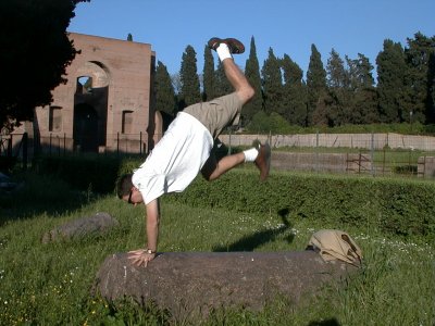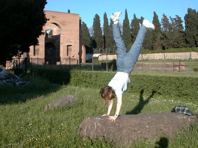 Naomi practicing gymanstics looks pretty good. Me on the other