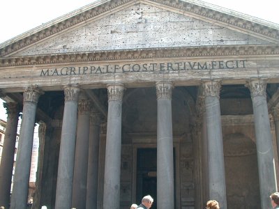 This is the outside of the Pantheon. The inscription translates