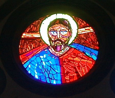 stained glass window in Santa Caterina. He's like a K-Mart Jesus